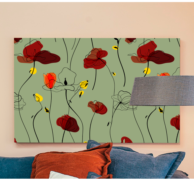 Esittelyssä Kukkakuvioinen kanvas-taulu unikoista, joka tuo modernin ja minimalistisen ilmeen tilaan! Taulu on graafisesti suunniteltu, ja siinä yhdistyvät kauniit unikot ja kukat luoden abstraktin ja rauhoittavan tunnelman. Vihreä tausta tuo esiin luonnon kauneuden ja rauhoittaa mieltä. Tämä kuva on täydellinen valinta, jos haluat tuoda luontoa sisätiloihisi ja nauttia niityn viehätyksestä!