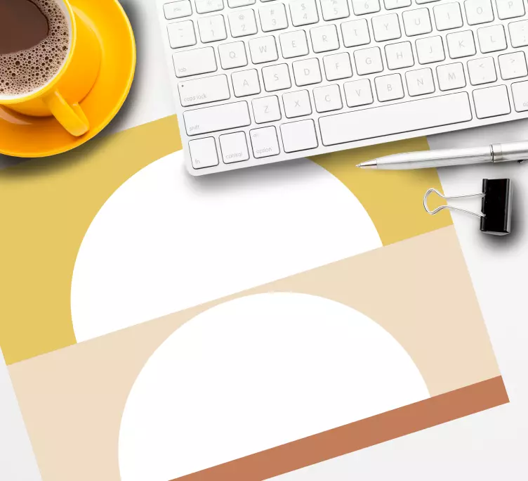 Geometriset ympyräkuviot hiirimatto on täydellinen yhdistelmä modernia ja minimalistista suunnittelua. Sen puoliympyrät ja abstrakti tyyli luovat harmonisen visuaalisen ilmeen, joka houkuttelee katseita. Tämä geometrinen taide yhdistää pehmeät värit ja pastellivärit luoden rauhoittavan ympäristön työpisteellesi. Muodot ja kuvio tuovat esiin ainutlaatuista tyyliä, joka piristää päivittäistä työskentelyäsi!