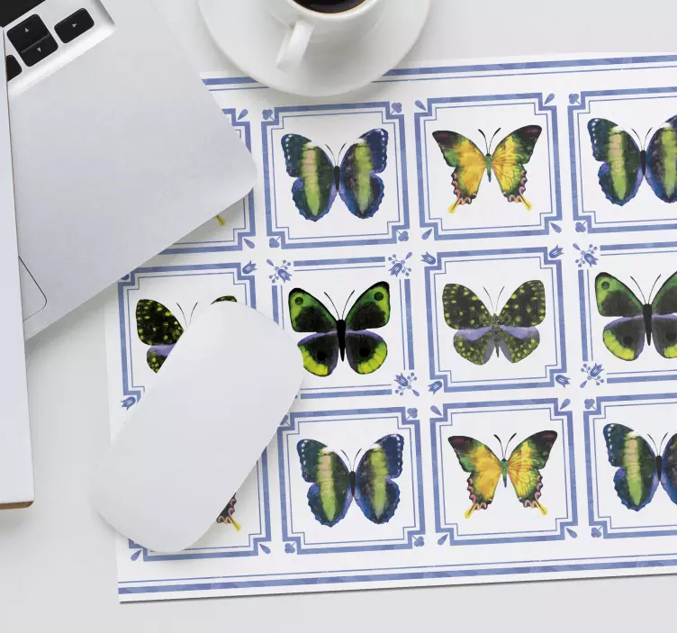 Tervetuloa tutustumaan värikkääseen perhoskoostumuskuvio hiirimattoon, joka tuo eloa ja luontoa työpöydällesi! Tämä upea tuote yhdistää perhoset ja mosaiikkimaisen designin, jossa värit loistavat kirkkaina. Vanha tyyli ja luonnon inspiroimat ötiäiset luovat harmonisen tunnelman, joka innostaa ja motivoi työskentelemään. Tämä koristeellinen hiirimatto on täydellinen valinta kaikille, jotka arvostavat kauniita ja käytännöllisiä tuotteita!