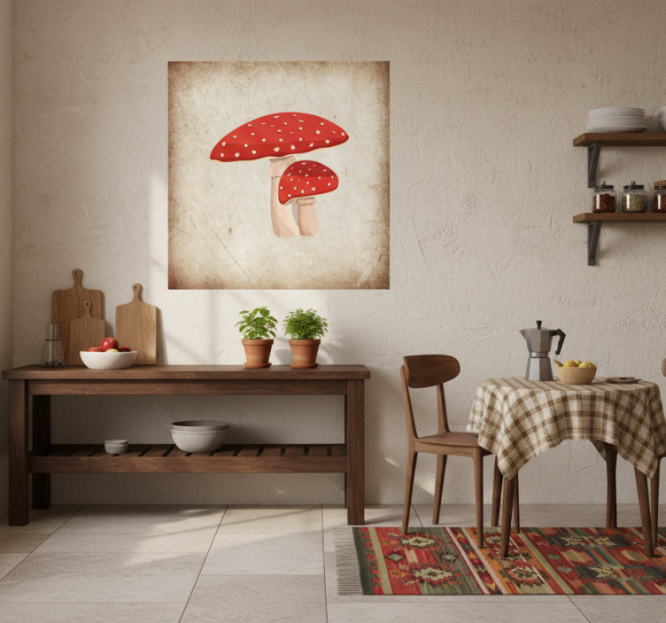 Amanita-sienijulistekeittiöjuliste keittiöjuliste on helppo sijoittaa mihin tahansa keittiön seinään! Voit käyttää kaksipuolista teippiä sen takana tai kehystää sen vahvemmilla liimoilla. Kiinnitä nauhat taakse ja pidä kutakin nauhaa lujasti 10 sekunnin ajan. Voit myös käyttää nastoja tai uudelleenkäytettävää blu-tackia, joka antaa sinulle joustavuutta julisteen sijoittamisessa. Tällä tavalla saat kauniin ja ainutlaatuisen koristuksen keittiöösi!