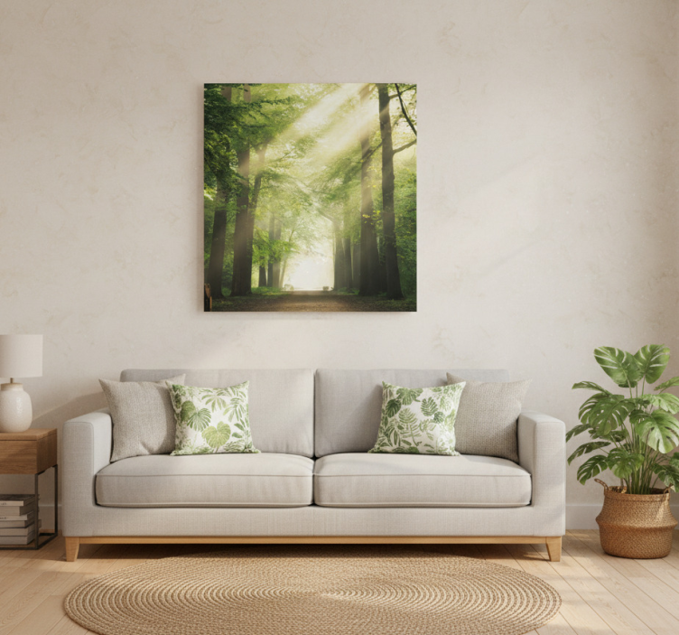 Auringonpaisteinen vihreä metsä oleskelutilan juliste on erinomainen valinta, koska se tuo luonnon rauhoittavan vaikutuksen sisätiloihin. Oleskelutilan juliste ei vain kaunista tilaa, vaan se myös luo lämpimän ja kutsuvan tunnelman, joka houkuttelee vieraita. Kuvan vivahteet ja värit lisäävät elämää ympärillesi ja tekevät tilasta elinvoimaisemman. Juliste toimii myös keskustelun herättäjänä, kun ystävät ja perheesi tulevat kylään! Inspiroiva teos, joka tekee vaikutuksen!