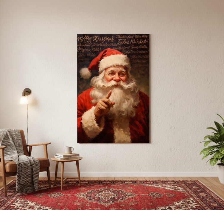 Joulujuliste joulupukin muotokuva on täydellinen koriste jokaisen joulunviettäjän kotiin! Sen iloinen ja jännittävä muotokieli tuo hymyn huulille ja luo lämpimän tunnelman. Juliste on erinomainen valinta niin perheille kuin ystävillekin, sillä se tuo mukanaan joulun iloa ja riemua. Kuvan värikkyys ja selkeys vangitsevat katseet, ja se toimii hienona keskustelunavauksena joulun ajan kokoontumisissa!