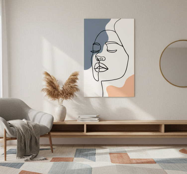 Moderni ja abstrakti kasvokuvajuliste olohuoneen juliste voidaan sijoittaa mihin tahansa seinälle, jossa haluat herättää huomiota. Asenna se esimerkiksi sohvan ylle tai sisustuselementtien viereen, jolloin se tulee täydellisesti esiin! Paras vaihtoehto on käyttää kaksipuolista teippiä julisteen takana, mutta voit myös kehystää sen tai käyttää nastoja. Anna luovuutesi virrata!