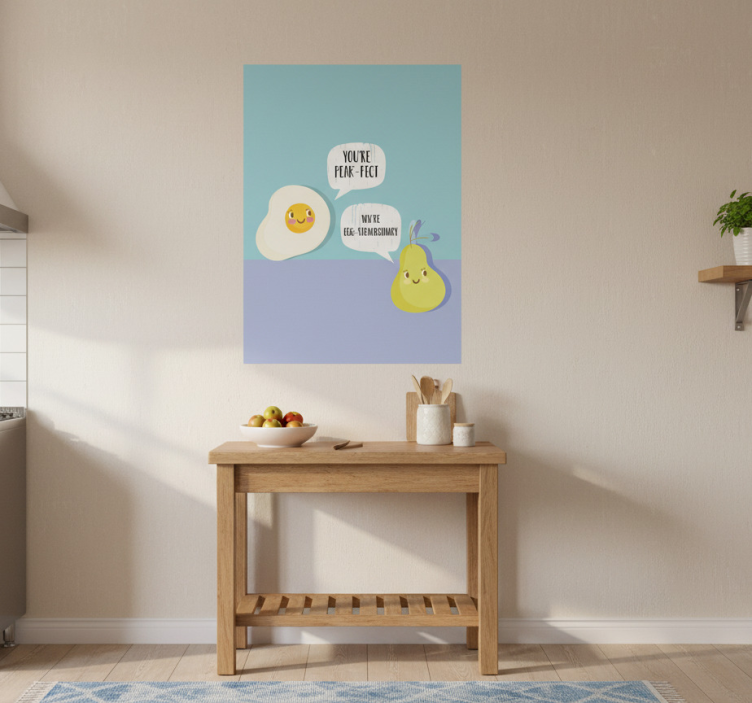 Munajae ja päärynähuumori keittiöjuliste on loistava valinta, kun haluat tuoda persoonallisuutta ja iloa keittiöön! Tämä juliste ei ainoastaan koristaa seinää, vaan se myös inspiroi ja luo mukavan tunnelman ruoanlaittoon. Se on täydellinen keskustelunavaaja, joka saa vieraasi hymyilemään ja rentoutumaan. Anna keittiösi loistaa Munajae ja päärynähuumori keittiöjuliste -julisteen avulla – se on kuin pieni annos iloa jokaiselle, joka katsoo sitä!