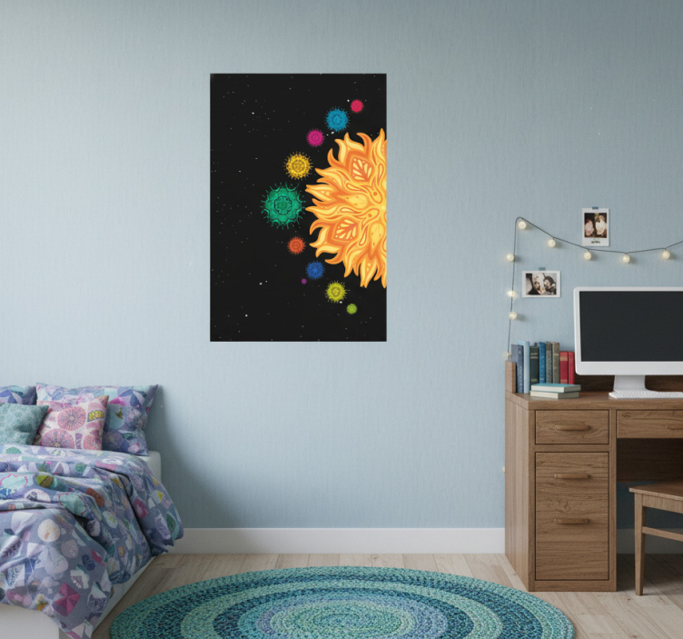Nuortenjulisteaurinkokuntamandalat on loistava valinta nuortenhuoneeseen, opiskelutiloihin tai vaikka olohuoneeseen. Tämä nuortenjuliste inspiroi nuoria ja aikuisia alikeen, sillä se tuo esille positiivisen energian ja luovuuden! Julisteen kauniit värit ja ainutlaatuinen muotoilu luovat harmonisen ilmapiirin, joka kannustaa luovaan ajatteluun. Koristele tilaasi tällä upealla julisteella ja anna sen puhua puolestaan!