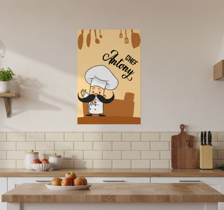 Personoitu keittiömestari keittiöjuliste on loistava tapa koristella keittiösi ja tuoda esiin oma makusi. Tämä upea keittiöjuliste ei ainoastaan kaunista tilaa, vaan myös inspiroi kokkaamaan ja viettämään aikaa keittiössä! Sen tyylikäs muotoilu ja värit tekevät siitä katseenvangitsijan, joka herättää keskustelua vieraiden keskuudessa. Anna keittiösi kertoa oma tarinansa ja tuo siihen ripaus persoonallisuutta tämän upean julisteen avulla!