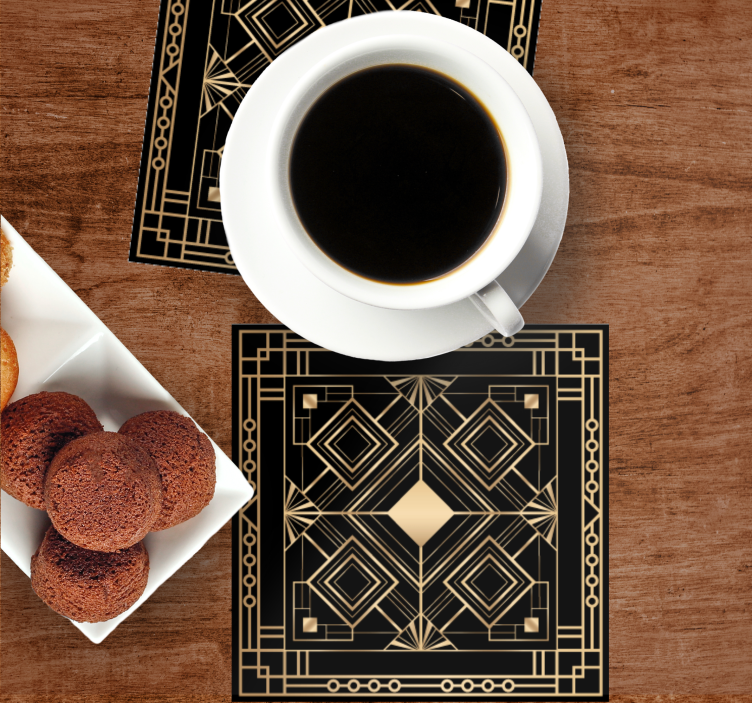 Geometrinen kuvio kultaisilla yksityiskohdilla lasinalunen on tyylikäs ja elegantti lisä jokaisen kodin sisustukseen. Sen geometrinen muotoilu, jossa yhdistyvät rombit ja symmetria, luo visuaalisesti miellyttävän vaikutelman. Kauniit kultaiset yksityiskohdat korostavat mustaa taustaa, tehden lasinalusista todellisen katseenvangitsijan!