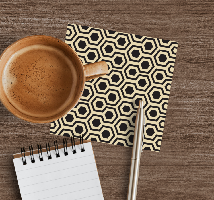 Mehiläispesäkuvioinen lasinalunen on moderni ja tyylikäs lisä jokaiseen kotiin! Graafinen suunnittelu yhdistää kuusikulmion ja geometriset muodot, luoden toistuvan kuvion mustan ja beige värimaailman ansiosta. Tämä kuusikulmainen design tuo raikkautta ja eleganssia mihin tahansa sisustukseen, olipa kyseessä sitten ruokapöytä tai kahvipöytä. Lasinalusen ainutlaatuinen kuviointi ei ainoastaan näytä hyvältä, vaan se myös herättää keskustelua vieraiden keskuudessa!