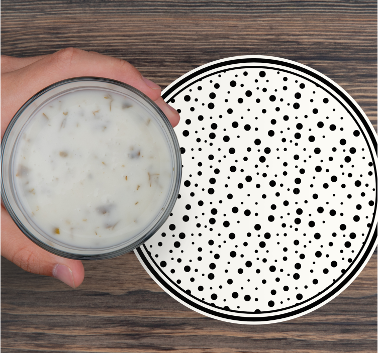 Puhdistus on helppoa! Mustapistekuvioinenlasinalunen voidaan pyyhkiä kostealla liinalla, ja se on myös likaa hylkivä, joten se säilyttää kauniin ilmeensä pitkään. Liukumaton ja vedenpitävä materiaali takaa, että voit nauttia juomistasi ilman huolia!