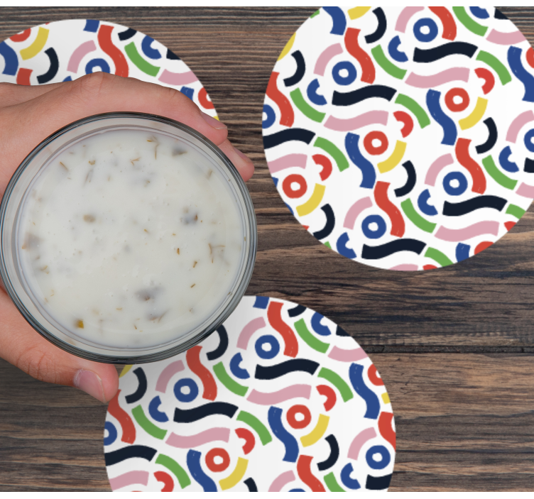 Värikkäät abstraktit kuviot lasinalusen suunnittelu on graafisesti kiehtova yhdistelmä geometrisia muotoja ja monivärisiä kuvioita. Tämä kuviollinen tausta on täynnä abstrakteja värikkäitä pyörteitä ja tekstuureja, jotka tuovat modernia ilmettä mihin tahansa tilaan. Lasinaluset eivät ainoastaan suojaa pintoja, vaan toimivat myös upeana sisustuselementtinä!