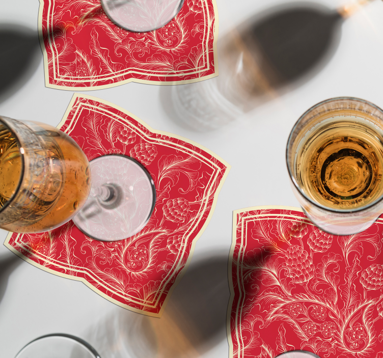 Yksityiskohtainen kukkakuviollinen lasinalunen on täydellinen valinta, kun haluat lisätä tyylikästä tunnelmaa kattaukseesi! Sen paisley-kuviointi yhdistettynä kukka-teemaan luo upean visuaalisen ilmeen. Tämä koristeellinen ja tyylikäs lasinalunen on kehystetty kauniilla rakenteella, joka tekee siitä erottuvan osan jokaista tilaisuutta. Punaiset sävyt tuovat lämpöä ja eloisuutta mihin tahansa ympäristöön!