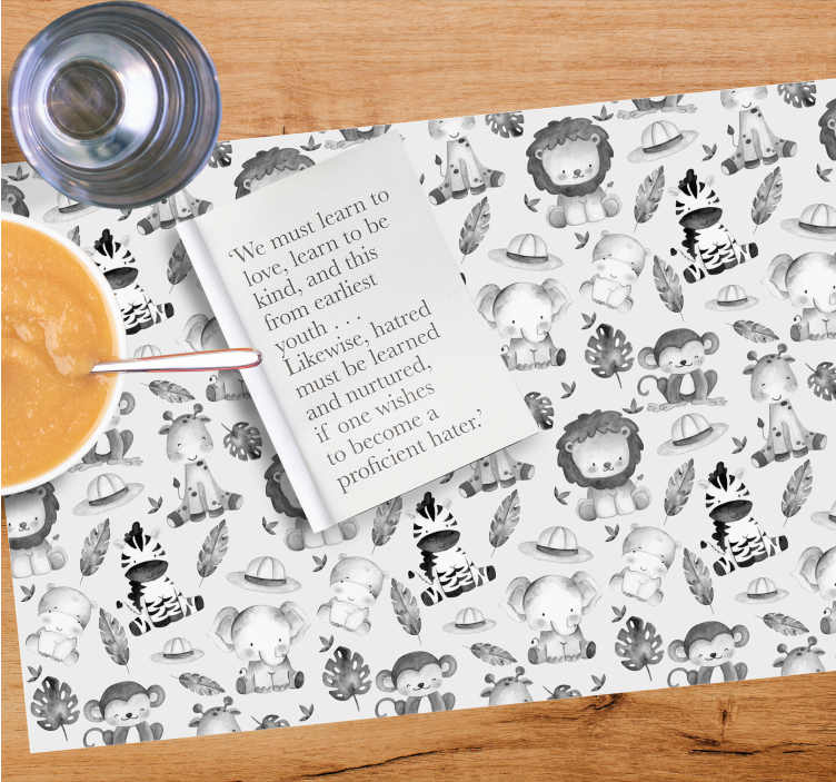 Tämä lasten malli sisältää mustavalkoisia eläintarhaeläimiä, kuten leijonia ja seeproja.