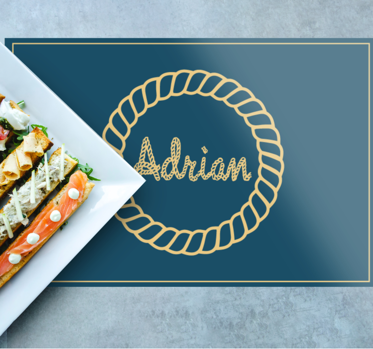 Tässä mallissa on meripuku sinisellä pohjalla ja mahdollisuus laittaa valitsemasi nimi keskelle.