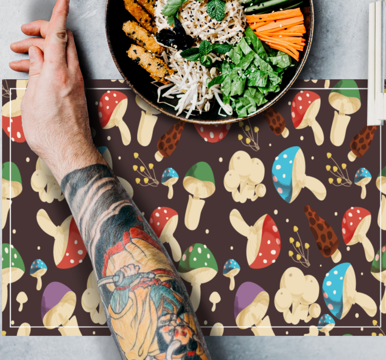 Hanki tämä ruskea pöytälevy sienikuviolla lounaaksi.