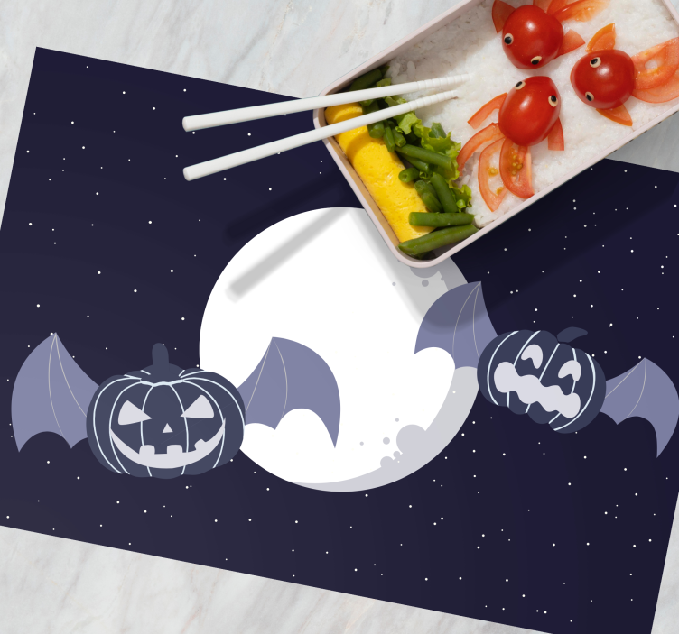 Musta kurpitsa kasvot yöllä halloween pöytä matot