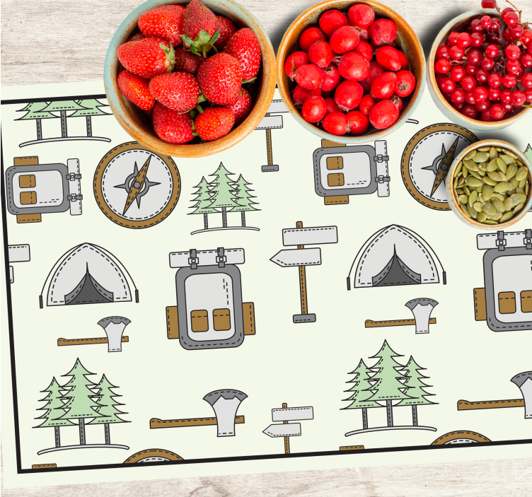 Sarjakuvakuvioinen pöytämatto lounaalle