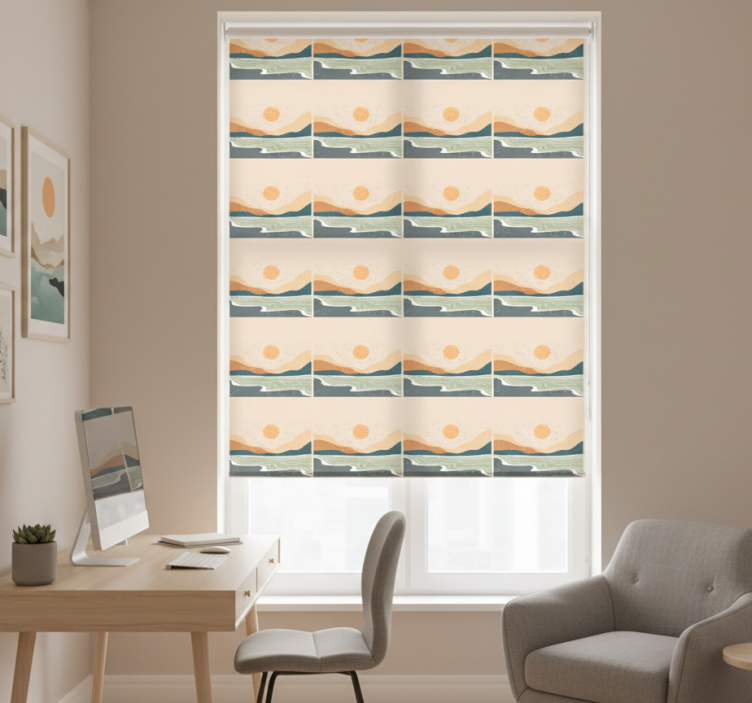 Abstrakti auringonlasku vuoret toimiston rullaverho ei ainoastaan suojaa huonetta suoralta auringonvalolta, vaan myös tarjoaa yksityisyyttä, kun se lasketaan alas. Tämä verho on täydellinen lisä, jos haluat luoda rauhallisen ja inspiroivan työympäristön. Sen kaunis suunnittelu herättää keskustelua ja tuo iloa jokaiseen päivään! Lisäksi se auttaa säätämään huoneen lämpötilaa, mikä tekee siitä käytännöllisen valinnan. Älä jää paitsi tästä mahdollisuudesta parantaa sisustustasi!