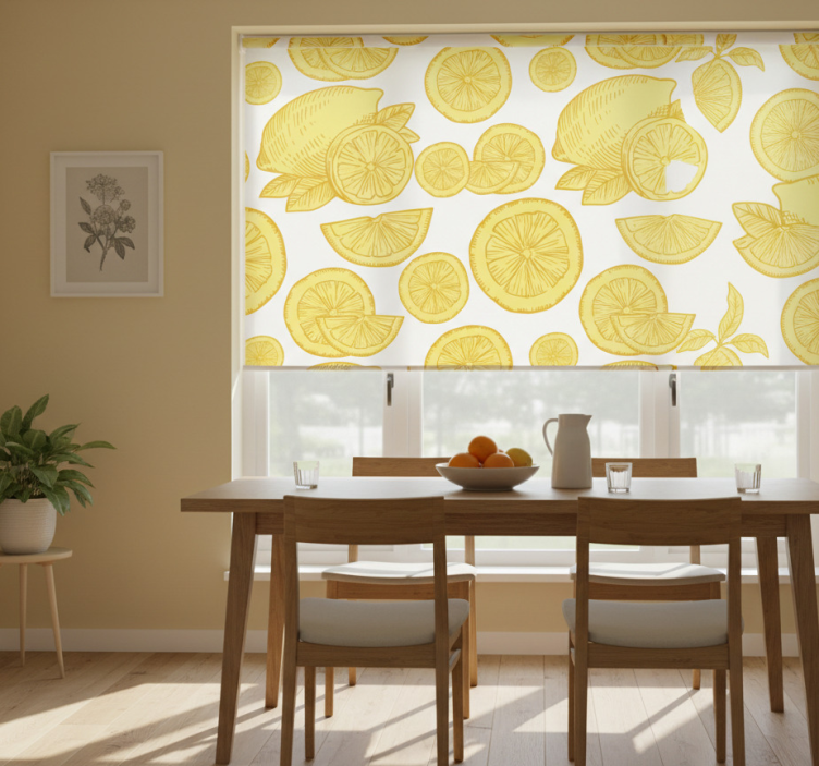 Appelsiini ja sitruuna kuvio ruokasalin rullaverho on täydellinen valinta, jos haluat elävöittää tilaa ja luoda mukautuvan ympäristön. Tämä ruokasalin rullaverho ei ainoastaan kaunista huonetta, vaan se myös suojaa sinua suoralta auringonvalolta, mikä tekee ruokailuhetkistä entistä miellyttävämpiä! Sen avulla voit säätää huoneen lämpötilaa ja nauttia rauhallisista hetkistä ilman häiriöitä. Valitsemalla tämän tuotteen, tuet myös kodin turvallisuutta, sillä voit nähdä ulos ilman, että sinua nähdään. Anna kodillesi uusi ilme ja tunnelma Appelsiini ja sitruuna kuvio ruokasalin rullaverholla!