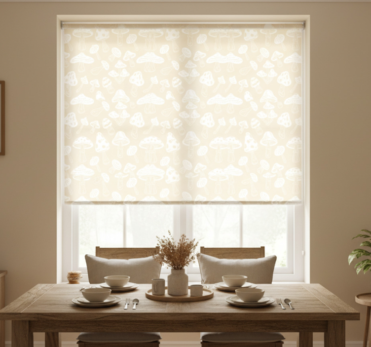 Beige sienimuotoilut ruokasalin rullaverho