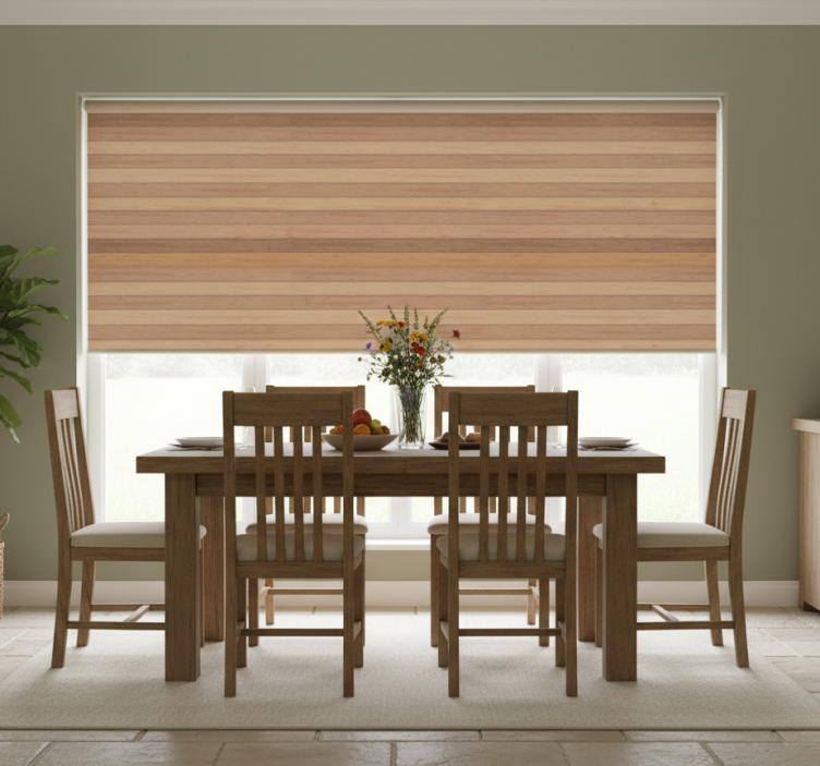 Elegantti rustiikkipuu ruokasalin rullaverho