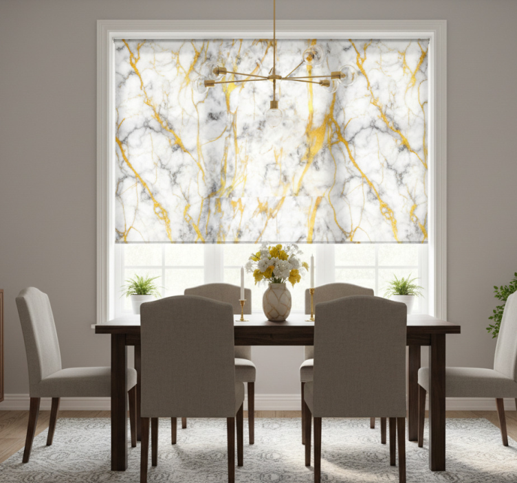Elegantti harmaa ja kultainen marmoriruokasalin rullaverho