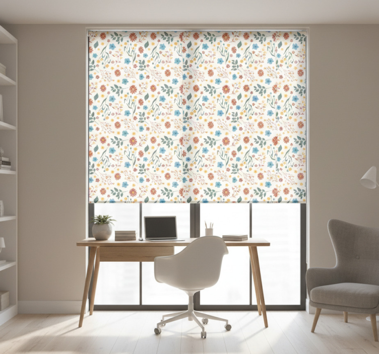 Erilaiset kukat ja kasvit toimiston rullaverho