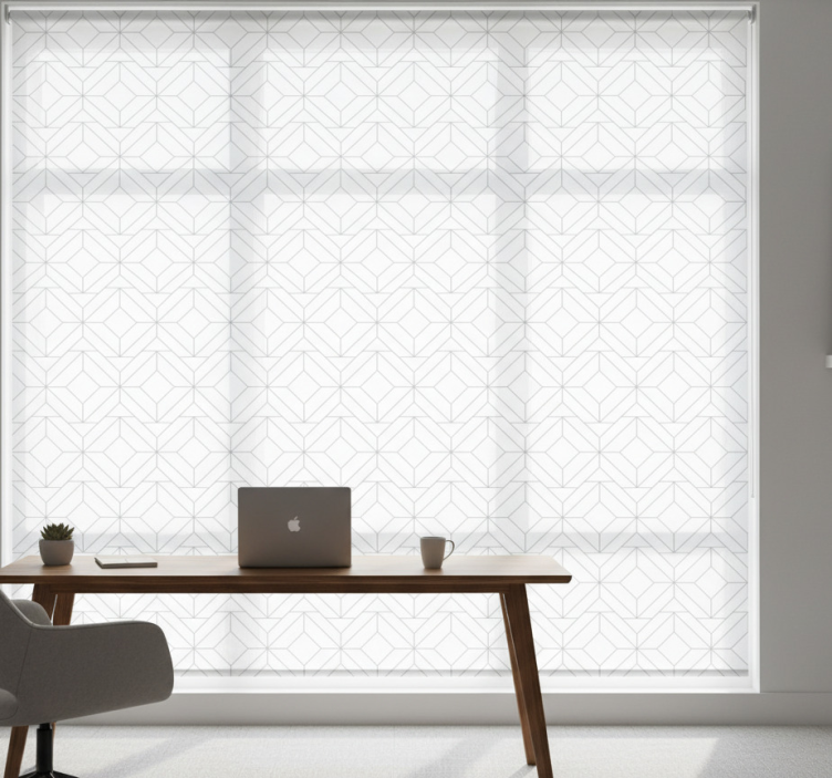 Geometrinen valkoinen kuvio toimiston rullaverho