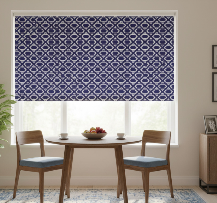 Geometriset kuusikulmaiset muodot ruokasalin rullaverho
