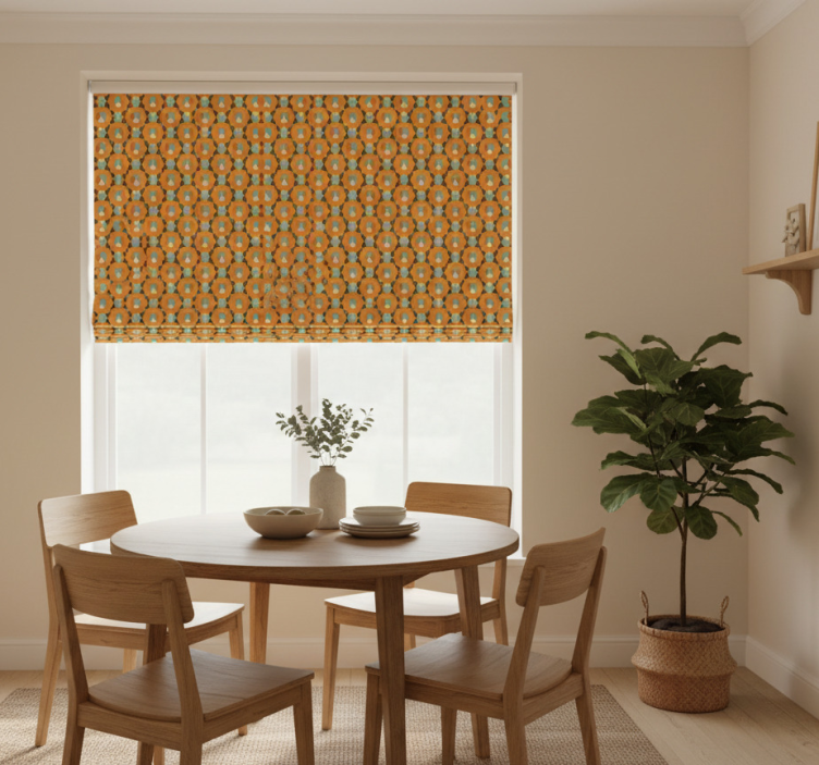 Geometriset rauhoittavat muodot ruokasalin rullaverho