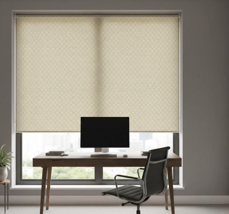 Viite: E7319Graafinen harmaa ja beige toimiston rullaverho yhdistää tyylikkään muotoilun ja käytännöllisyyden. Sen kaunis graafinen kuvio tuo modernia ilmettä toimistotilaan, luoden samalla rauhoittavan ja inspiroivan ympäristön. Tämä rullaverho ei vain suojaa suoralta auringonvalolta, vaan se myös parantaa huoneen yleisilmettä.