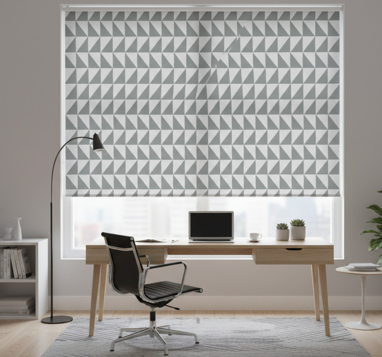Harmaa geometrinen kuvio toimiston rullaverho