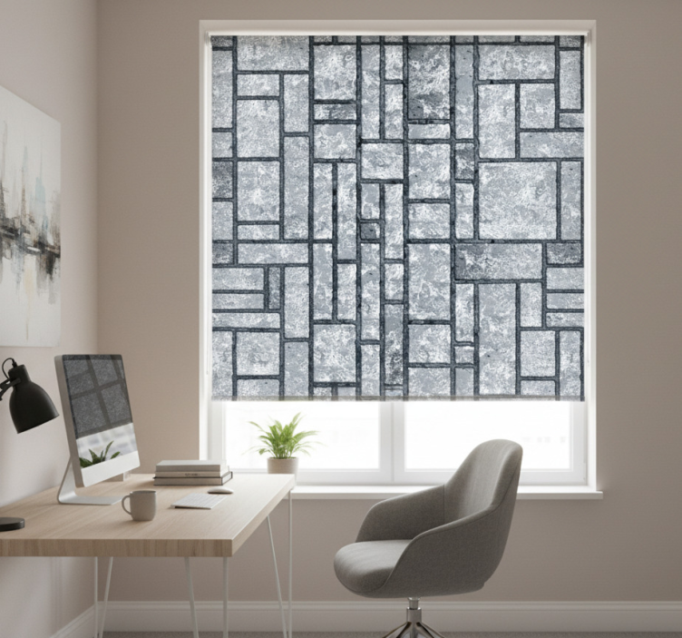 Tietoa Harmaat betonilohkot toimiston rullaverho