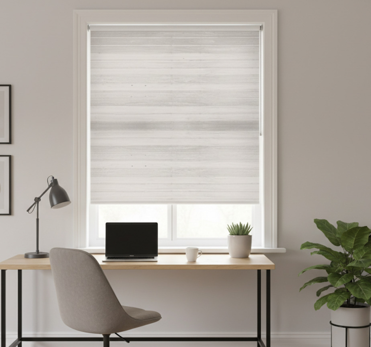Harmaat elegantit rustiikkiset puulaudat toimiston rullaverho