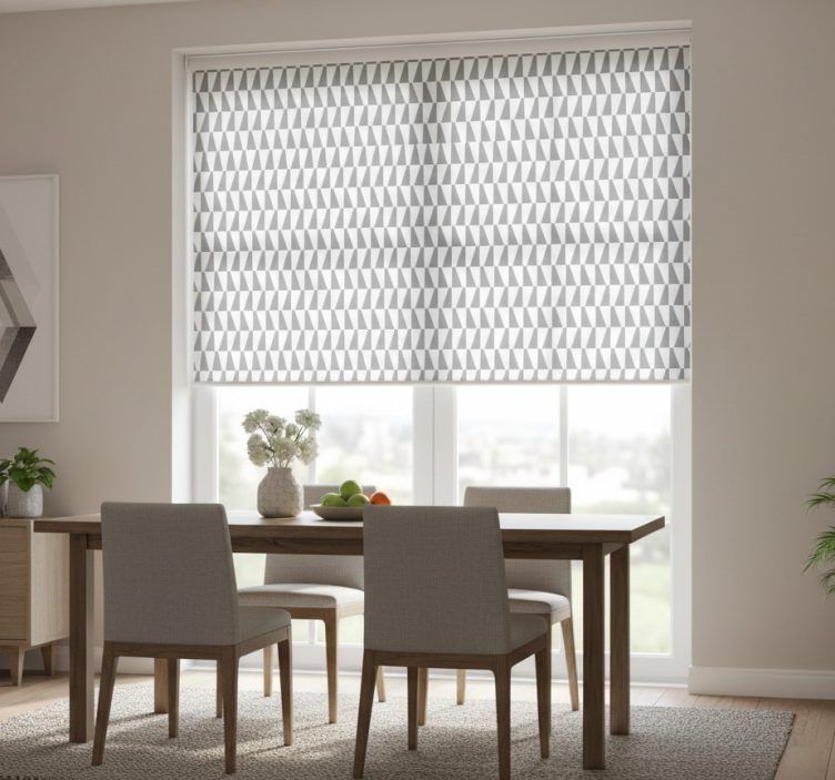 Harmaat kolmiot ruokasalin rullaverho ovat täydellinen ratkaisu, kun haluat yhdistää kauneuden ja toimivuuden. Ne tuovat huoneeseesi modernin ilmeen, joka herättää huomiota! Tämä ruokasalin rullaverho ei pelkästään suojaa auringolta, vaan myös parantaa huoneen sisustusta. Voit valita eri tekstuureista, jolloin voit räätälöidä verhot juuri omien mieltymystesi mukaan. Olipa tavoitteesi luoda rauhallinen tunnelma tai lisätä tilan ilmavuutta, nämä verhot tekevät sen helposti ja tyylillä!
