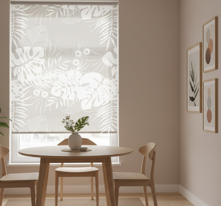 Harmaat trooppiset lehdet ruokasalin rullaverho
