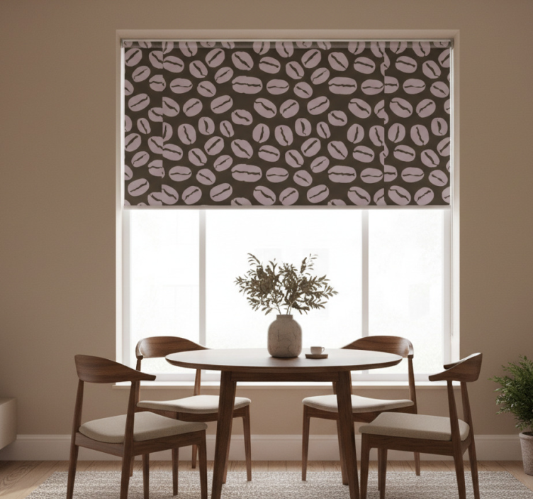 Kauniit kahvipavut ruokasalin rullaverho