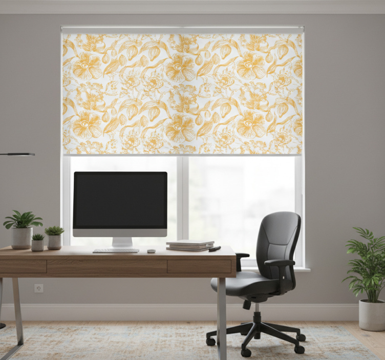 Keltaiset orkideat kukkakuosi toimiston rullaverho
