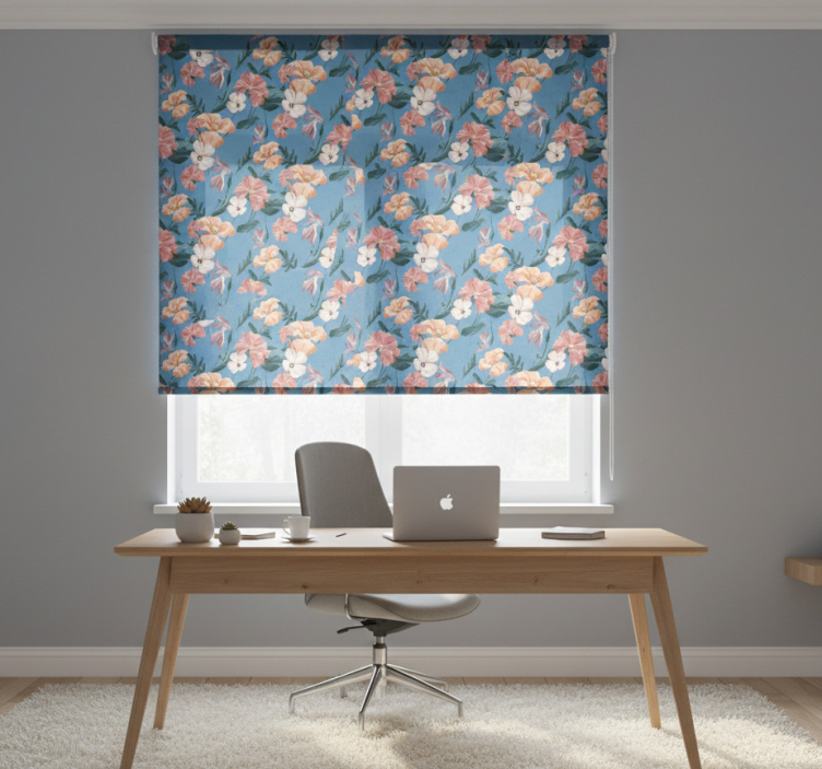 Kukkakuosi 'ziedi farkut' toimiston rullaverho