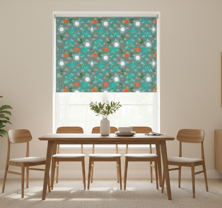 Kukkakuvioinen geometrinen ruokasalin rullaverho
