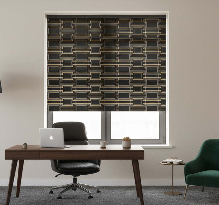 Kultakehykset taidekoristekuvio toimiston rullaverho