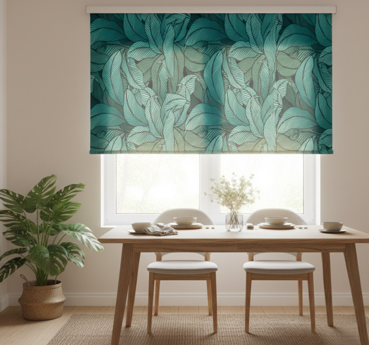 Luonnon tummanvihreät lehdet ruokasalin rullaverho