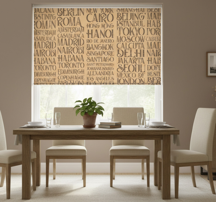 Maailman kaupungit ruokasalin rullaverho on täydellinen valinta, jos haluat tuoda tilaan persoonallisuutta ja tyyliä. Tämä ruokasalin rullaverho ei vain kaunista huonetta, vaan se toimii myös käytännöllisenä suojana auringonvalolta. Sen ainutlaatuinen design inspiroi ja luo tunnelmaa, joka tekee ruokailuhetkistä erityisiä. Kuvittele, kuinka kaupungin syke näkyy joka kerta, kun avaat verhot – se on kuin olisit osa suurta maailmaa!