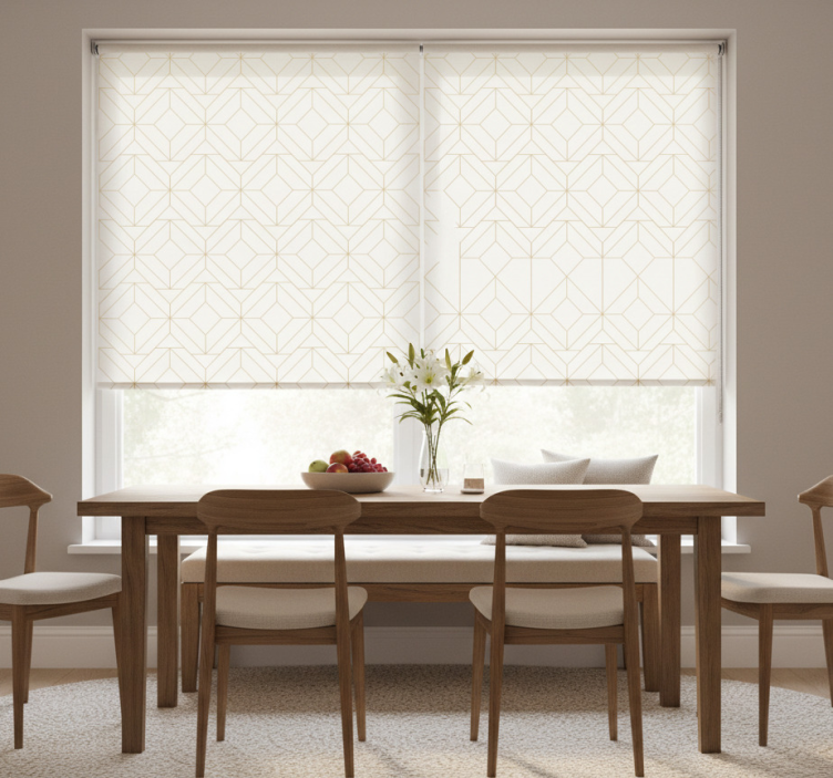 Modernit geometriset kuviot ruokasalin rullaverho on erinomainen valinta, koska se ei ainoastaan paranna huoneesi sisustusta, vaan myös tarjoaa käytännön etuja! Tämä rullaverho suojaa tilaa auringonvalolta ja luo mukautuvan tunnelman, joka mukautuu elämäntapaasi. Sen avulla voit hallita valon pääsyä huoneeseen, mikä auttaa luomaan miellyttävän ja rauhoittavan ympäristön ruokailuhetkiisi. Lisäksi geometriset kuviot tuovat tilaan modernin ilmeen, joka on ajankohtainen ja tyylikäs! Inspiroidu ja luo ruokasalistasi paikka, jossa on tilaa rentoutumiselle ja tunnelmalle!