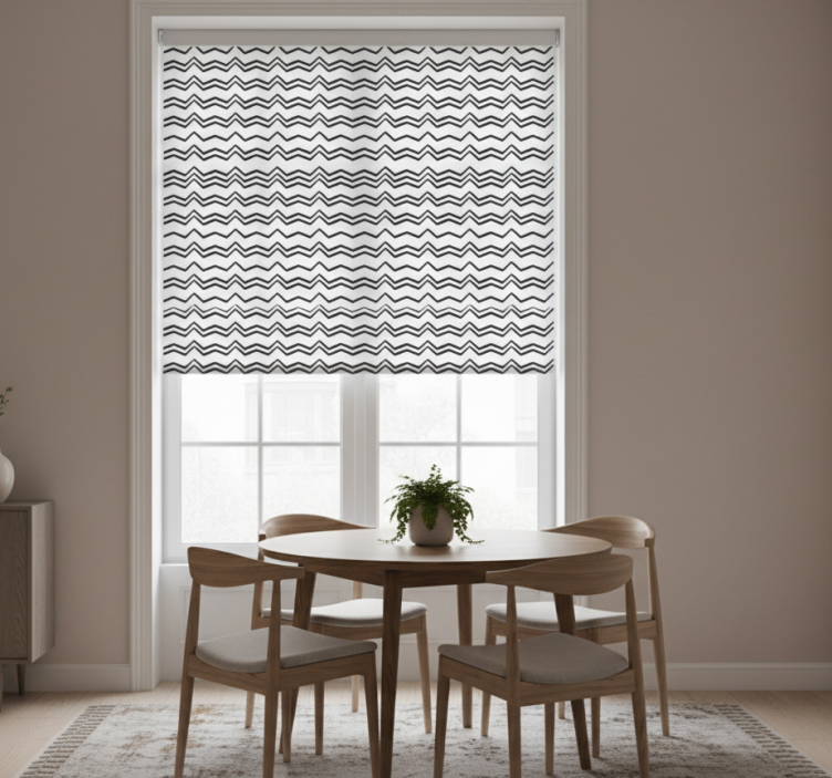 Mustavalkoinen sahalaita ruokasalin rullaverho