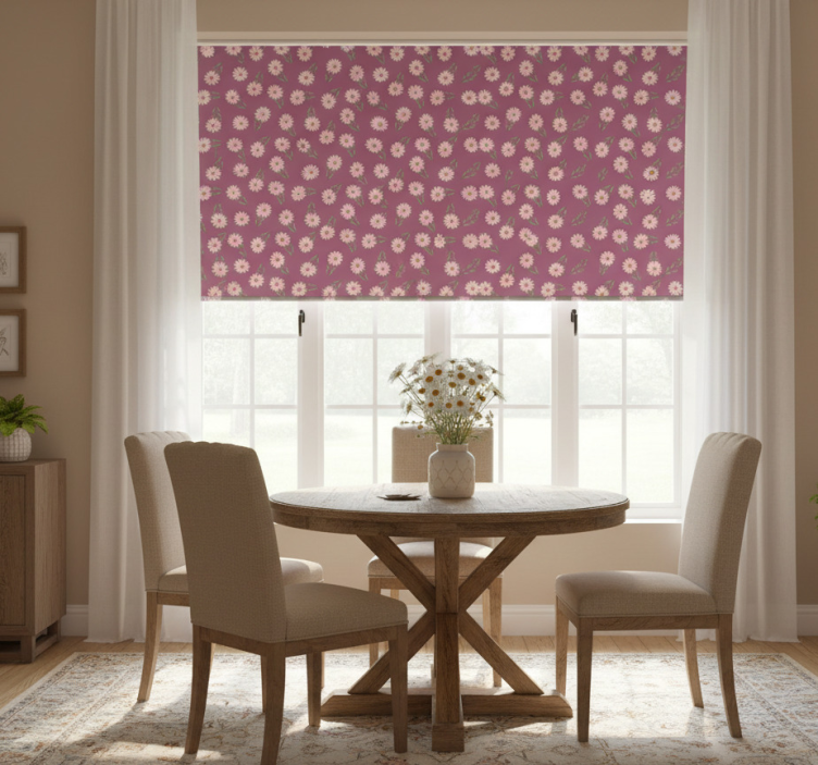 Pienet vaaleanpunaiset päivänkakkarat rullaverho