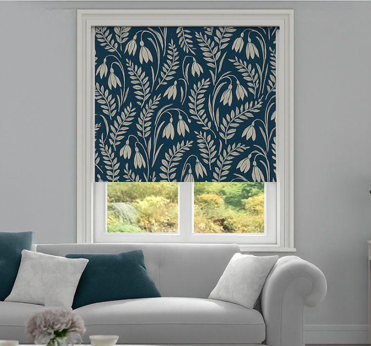 Viite: E6078Pohjoismainen rullaverho laivastonsininen beige lumikello