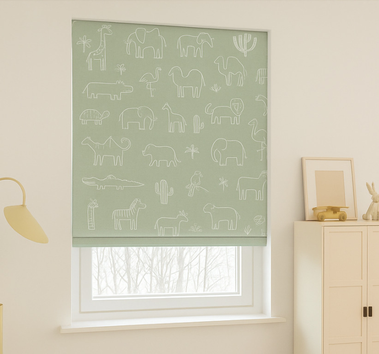 Pohjoismainen rullaverho viidakkon eläinten ääriviivat