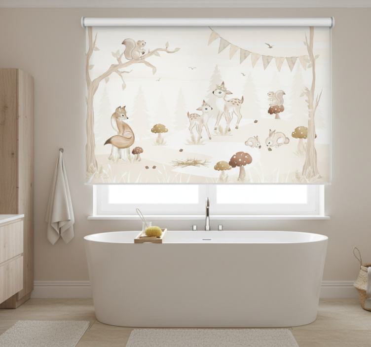 Satuinen metsälastentarha puukuviollinen rullaverho