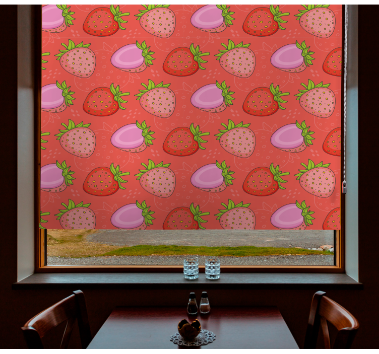 Punainen rullaverho sarjakuva mansikoita kuviossa