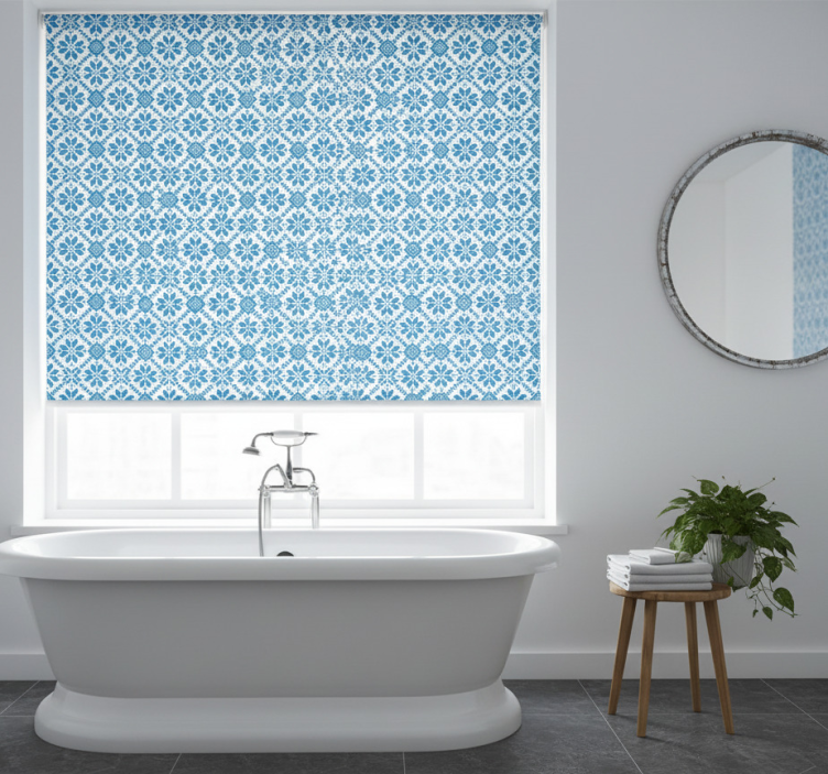 Sininen rullaverho laatta-kuvioinnilla on helppo asentaa. Sen kokoaminen kahdella napsautuksella tekee prosessista nopean ja vaivattoman! Voit purkaa verhon yhtä helposti, jolloin ikkuna ja sen ympäristö puhdistuvat nopeasti. Tämä verho on suunniteltu siten, että voit säätää huoneen lämpötilaa ja nauttia yksityisyydestäsi samalla, kun se tarjoaa turvallisuuden tunnetta. Anna tilallesi uusi ilme!